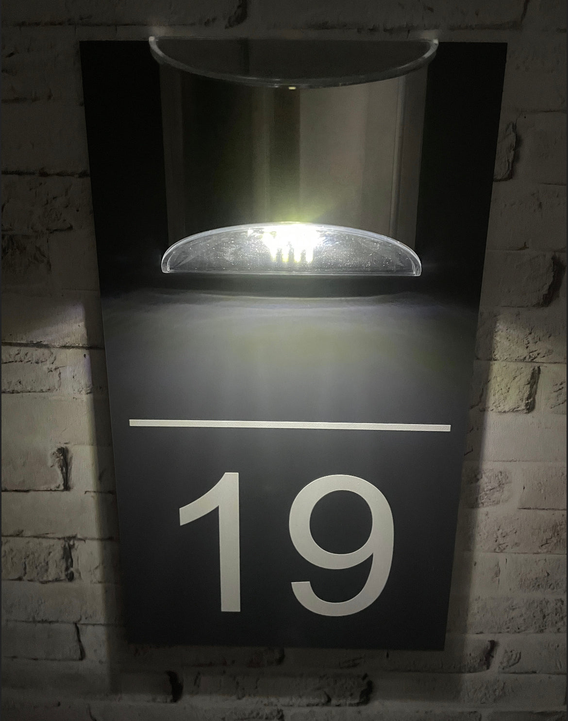 Solar House Sign LED Illuminated Contemporary Modern Door Number Plaque matt effect solar powered light