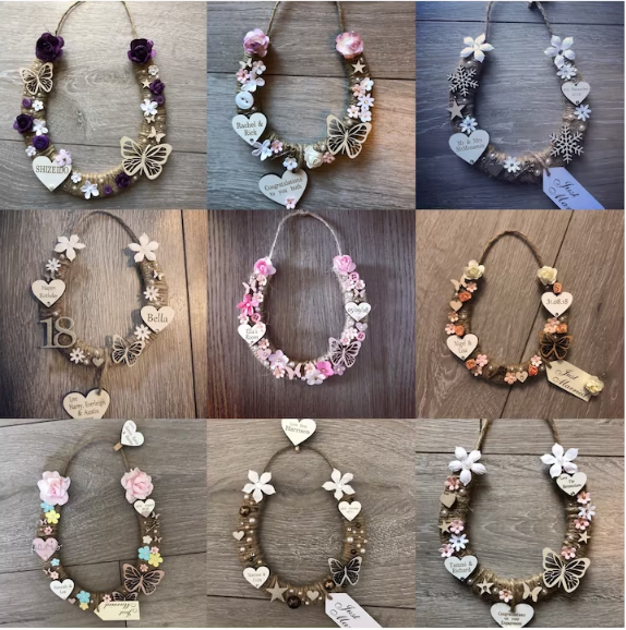 Our beautiful Handcrafted rustic Horseshoes are made in a choice of 2 sizes- Standard or Large.