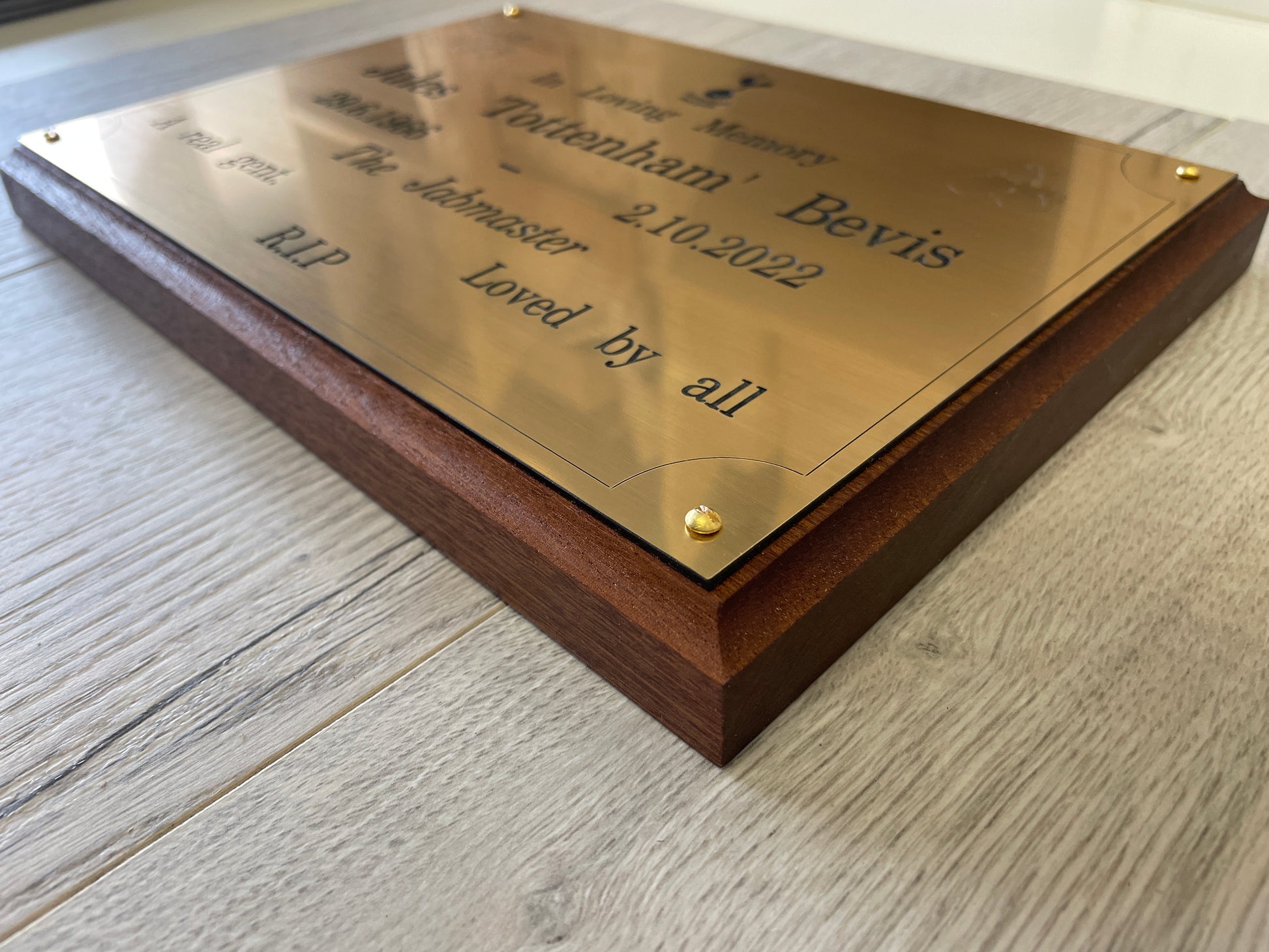 Pet Memorial Plaques: Explore our collection of pet memorial plaques, crafted from the finest hardwoods such as oak, iroko, and mahogany. These plaques are meticulously engraved with your pet's name, dates, and a heartfelt message, creating a lasting tribute that captures the essence of your cherished companion.