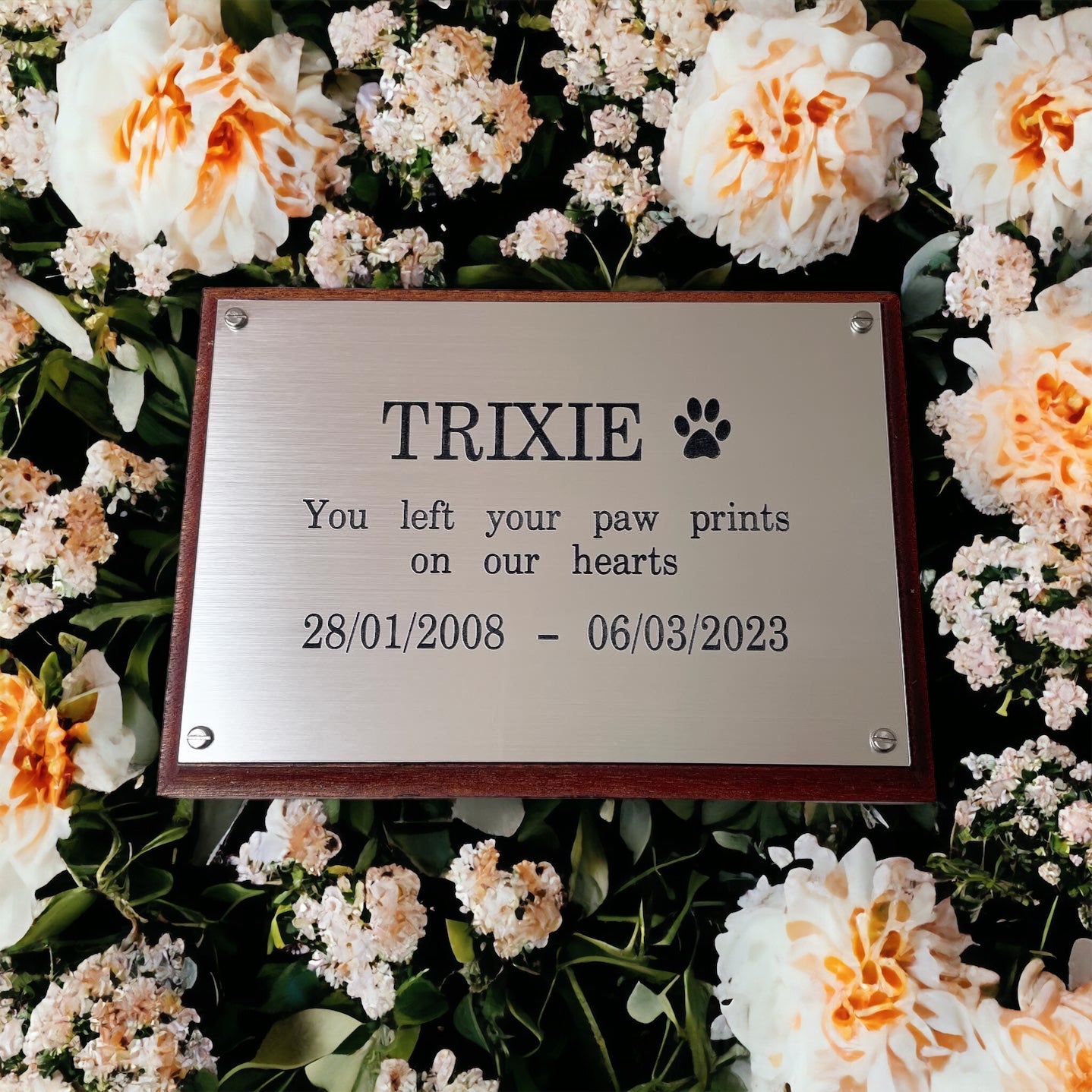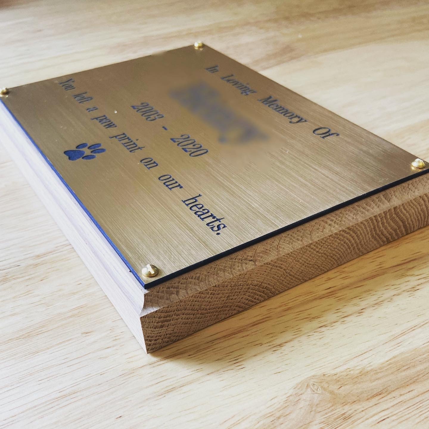 Personalisation Options: Customise your hardwood memorial with a touching pet memorial quote or a heartfelt pet memorial poem, ensuring that your tribute reflects the unique bond you shared with your beloved pet. Our personalised options allow you to create a bespoke memorial that honours your pet's memory in a meaningful way.