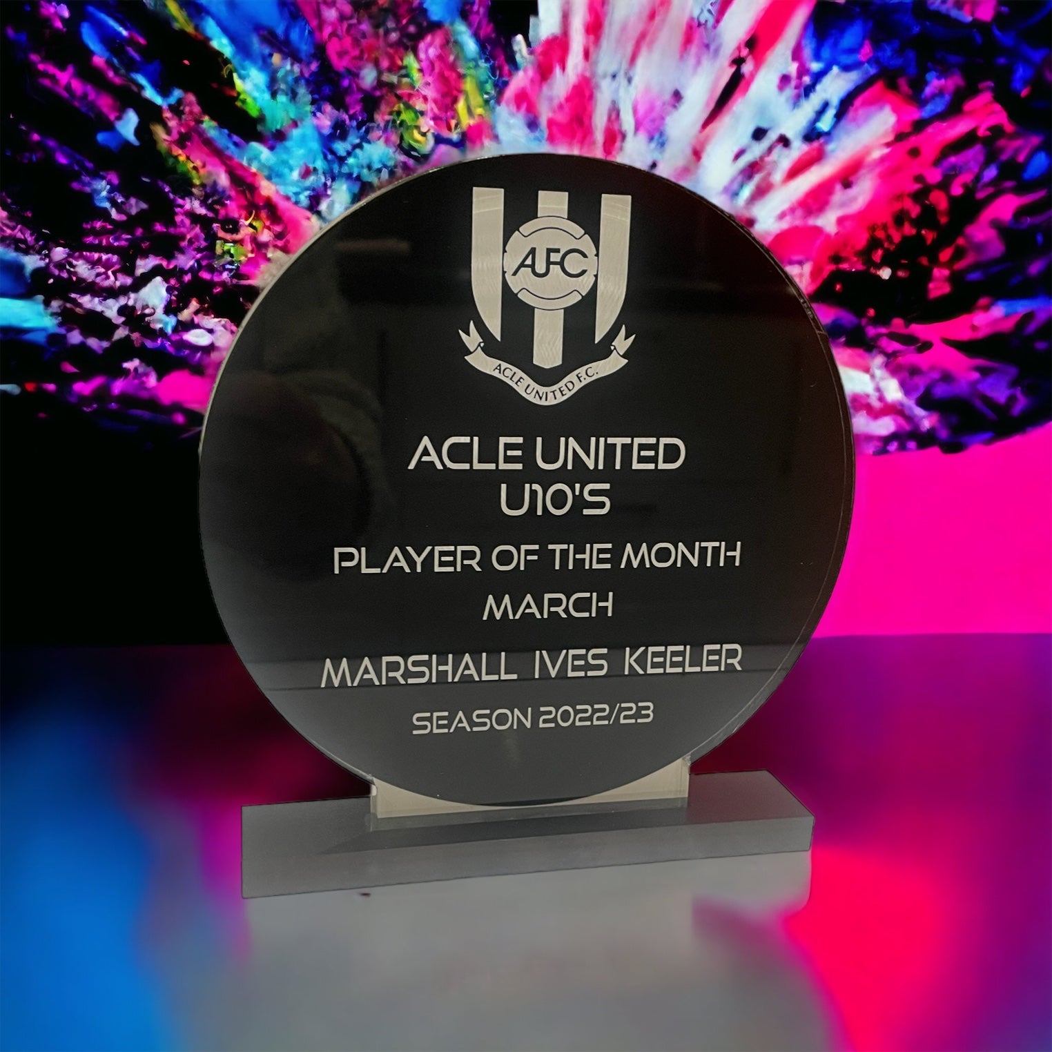 - Select Your Trophy Size & thickness : Choose from our exquisite round style trophy sizes & material thickness (5mm or 10mm thickness)