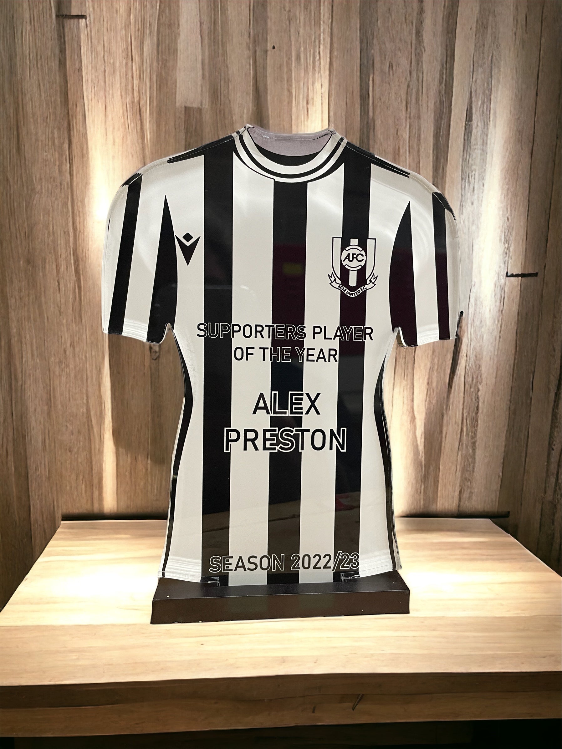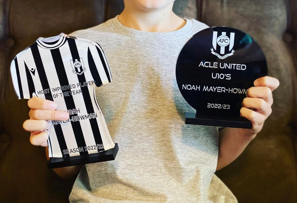 Trophies are printed on the reverse, allowing a high gloss front. All come in a black base unless otherwise requested.