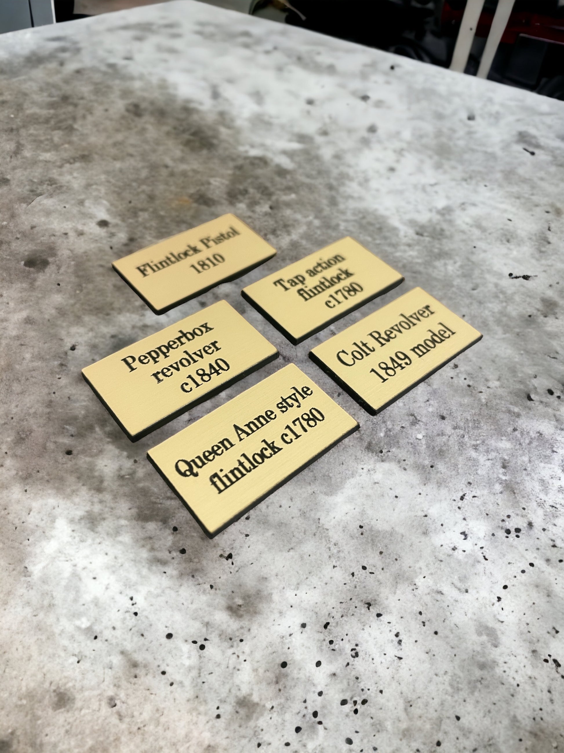 Enhance your cherished possessions with our Custom Engraved Plaques, available in brushed brass or silver effect. Order now and add a personalised touch to your collections and displays.