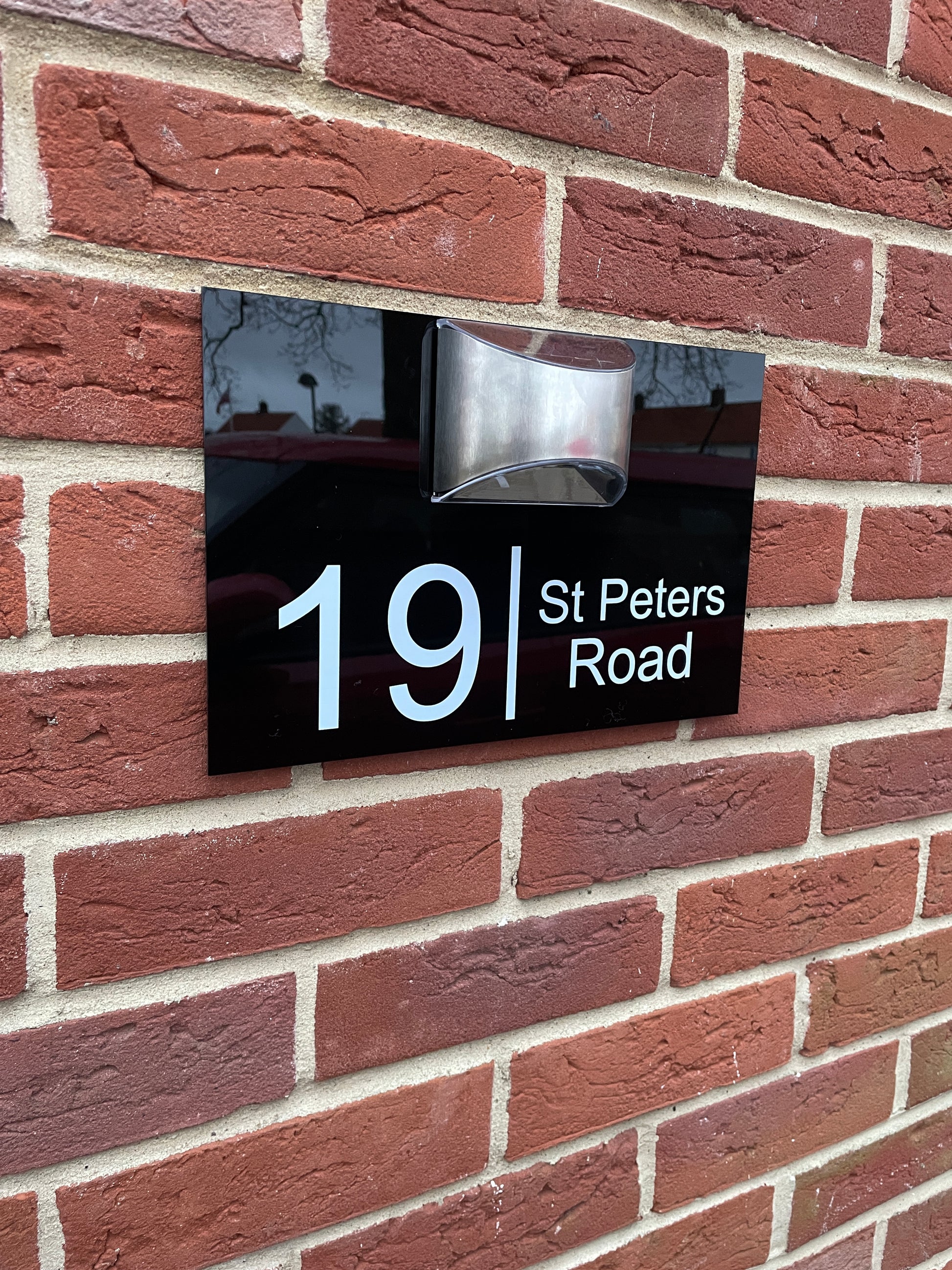 Solar House Sign LED Illuminated Contemporary Modern Door Number Plaque high gloss solar powered light large
