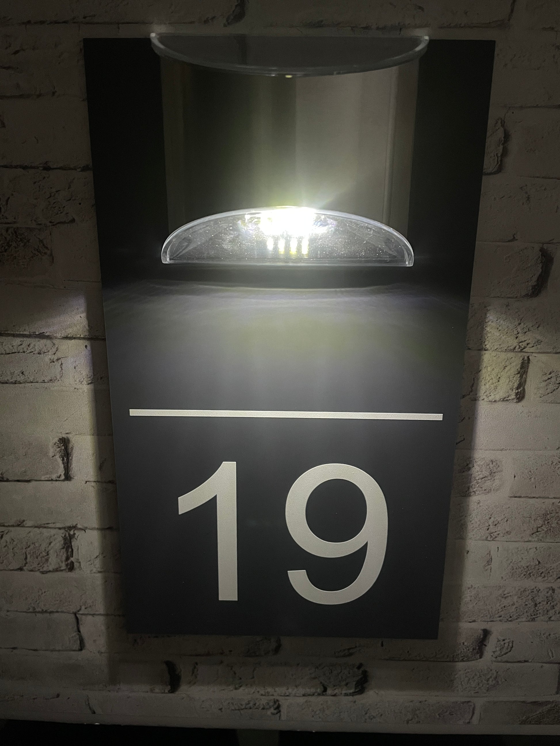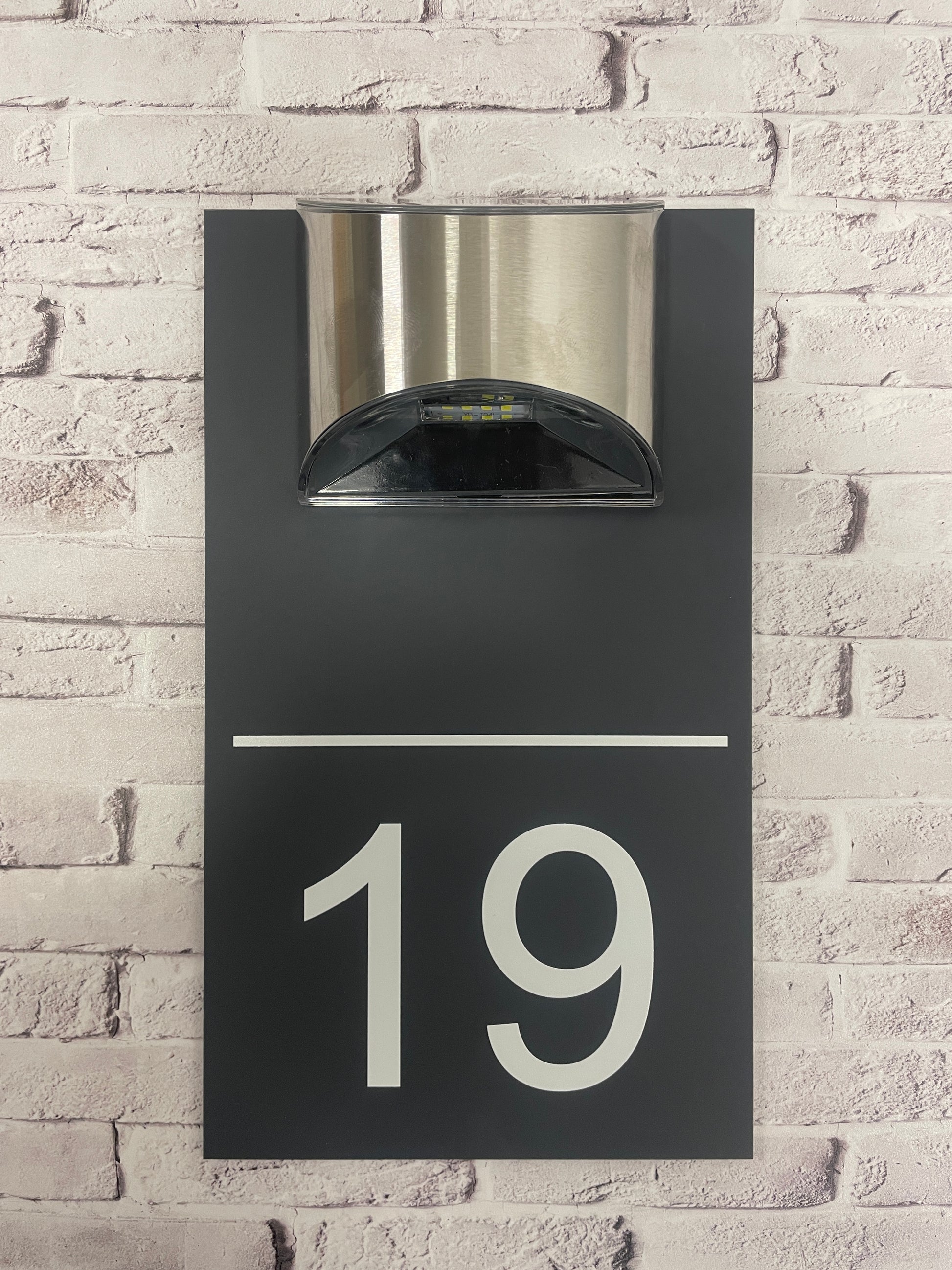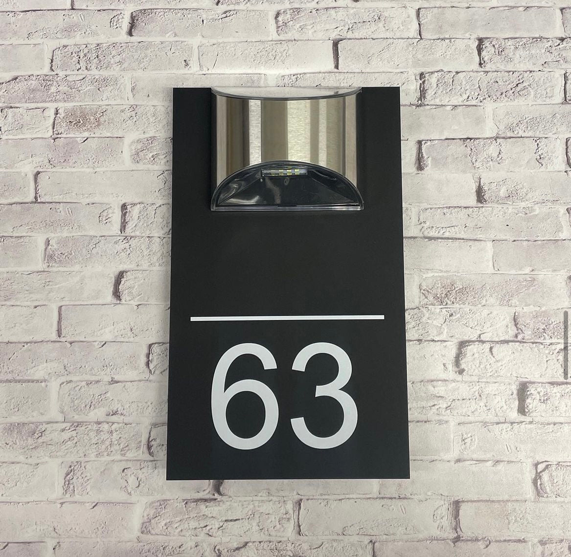 Solar House Sign LED Illuminated Contemporary Modern Door Number Plaque house number exterior decor grey