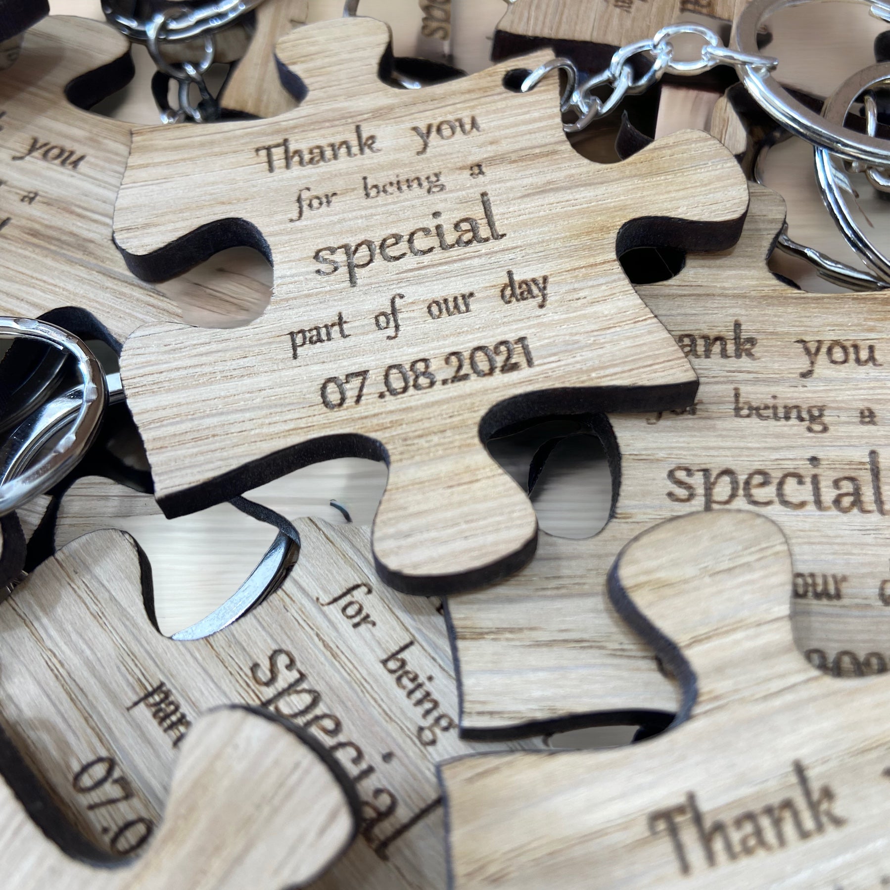 Personalised Rustic Oak Wedding Favour - Custom Keyring or Magnet